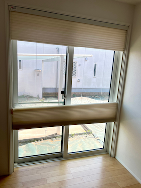 今回のハニカムシェードは、リビングではないものの1階でした。そのため家の中が丸見えになるのは防犯的にもあまりよろしくありません。