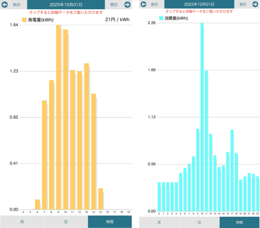 一番発電が低かった10/1曇りの日。