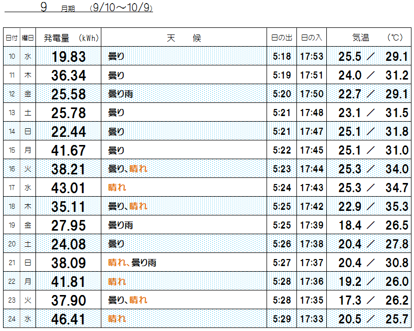 46.41kWh 晴れ 9/24